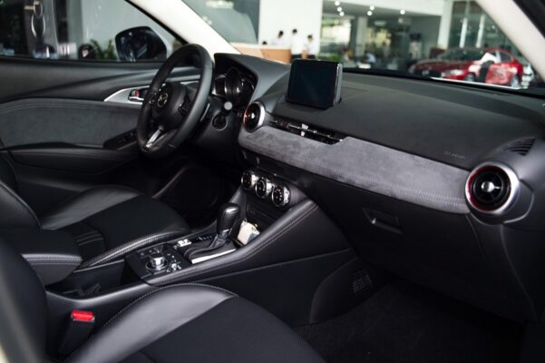 Về Nội Thất : Hệ thống giải trí cả 2 phiên bản đều trang bị màn hình cảm ứng 7 ich , đầu CD, DVD , kết nối Apple Carplay , Android auto, cổng USB , hệ thống 6 loa Nhật , hệ thống phanh tay diện tử , khởi động bằng nút bấm , chìa khóa thông minh , điều hòa tự động , kiểm soát ga tự động và bệ tỳ tay hàng ghế sau. Bản Mazda CX3 Premium dduwwocj trang bị thêm nẫy chuyển số trên vô lăng và màn hình hiển thị HUD.